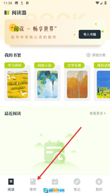 1、首页点击底部【推荐】,进入图书推荐界面选书。
