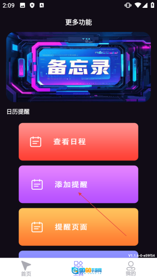 2、在更多功能界面,找到并点击【添加提醒】选项,即可进入添加提醒的操作界面。