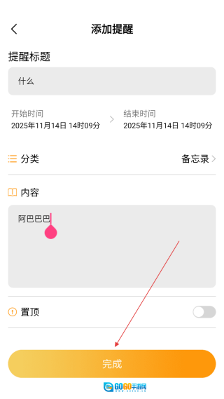 4、所有内容填写完毕后,点击【完成】按钮,就能完成添加提醒的操作了。