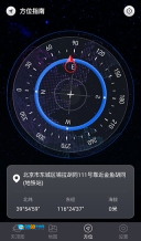 4、方位页面可查看当前方向位置与经纬度,点击右上角瞄准图标即可进行水平校准。