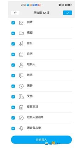步骤3:挑选需要迁移的数据类型,稍作等待,就能顺利完成文件传输。