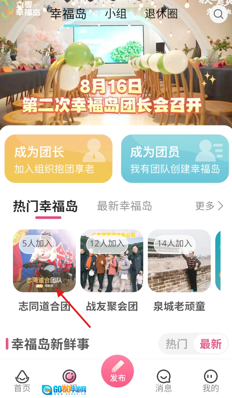 3、在“热门幸福岛”列表中,挑选一个感兴趣的幸福岛并点击进入。