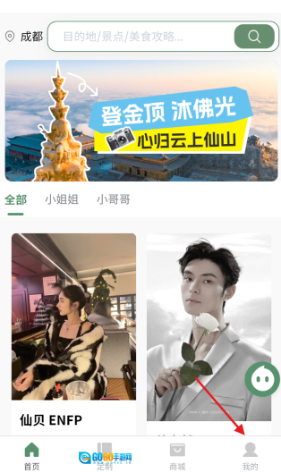 1、启动玩猴旅行应用进入首页后,找到界面右下角的“我的”选项,点击该选项进入个人页面。