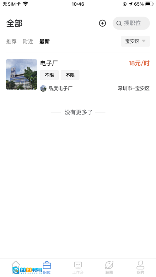 4、附近职位,核心功能是定位当前位置,搜索并展示附近的岗位,这是专门为希望在家附近工作的打工者提供的特色服务。