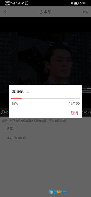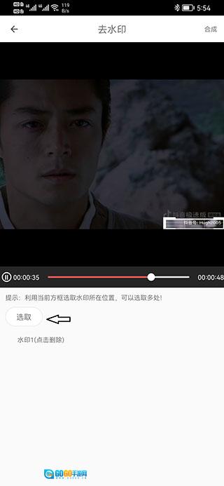 3、去水印的操作十分简单,视频界面会出现一个框选区域,只需将水印部分框选在内,接着点击“选取”按钮,下方就会弹出相关的功能列表。