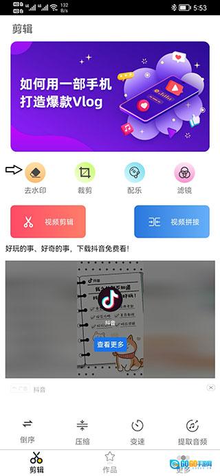 1、启动软件,进入如示意图呈现的首页后,点击“去水印”选项,以推进至后续操作环节。