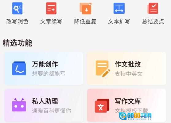 进入平台首页后,就能看到各类写作工具,便于用户点击使用。