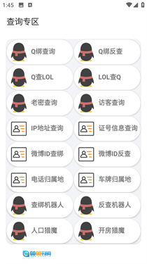 2. 点击“查绑功能”,该功能可提供Q绑查询、Q绑反查、Q查lol、lol查Q等服务。