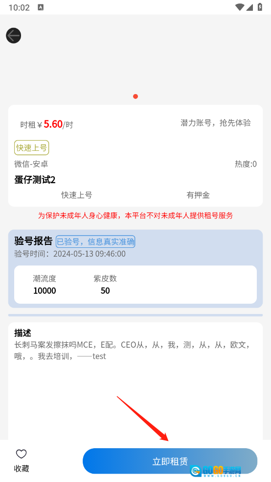 4、找到需要的账号点开,点击“立即租赁”即可。