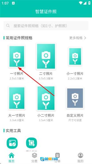 1、打开智慧证件照首页后,选择你需要的证件规格,就能进入证件照的制作页面。