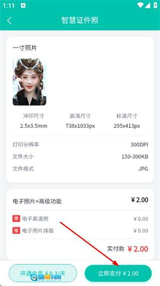 4、在智慧证件照的付款界面,点击立即支付按钮,就能完成证件照的制作流程。