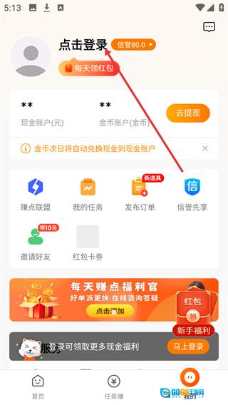 每天赚点登录方法