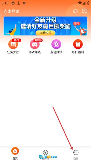 在“每天赚点”APP的首页,点击底部导航栏中的【我的】选项,就能进入个人中心页面。