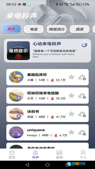 2、海量热门铃声任你挑选,流行金曲、经典老歌、二次元配乐应有尽有,全方位契合你的多样喜好,可自由选择。