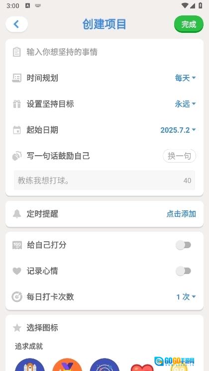 目标名称:写清楚你要干啥(比如“早起7点”)。