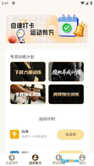3、着重突出自律打卡的重要性,借助打卡功能与运动计时工具,助力用户逐步养成规律运动的良好习惯,使运动安排更具条理和计划性。