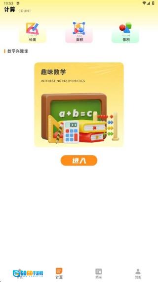 2、计算页面涵盖了长度、面积、体积的计算知识,便于用户轻松观看网课。