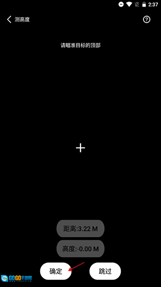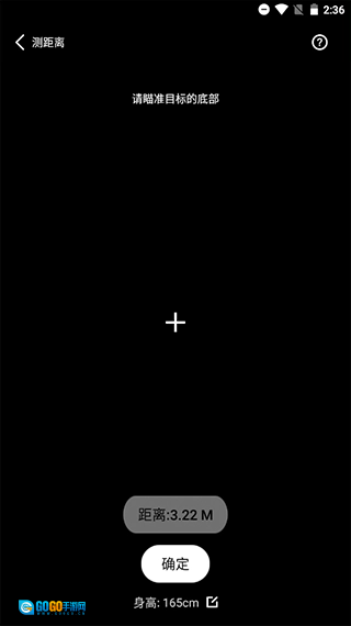 3、把十字准星的中心对准待测物体的顶部,点击“确定”,测量结果将自动显示。