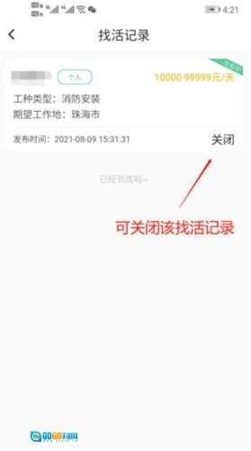 5、关闭找活记录功能。进入“我的找活”页面,即可查看找活记录信息。