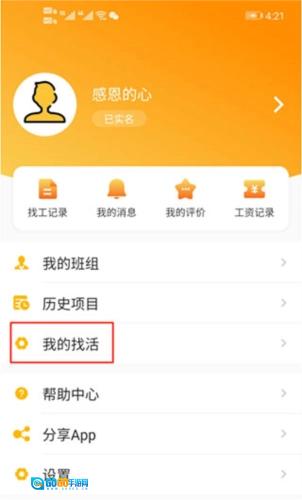 4、点击底部的“我的”,再进入“我的找活”页面,就能查看自己发布过的找活信息了。