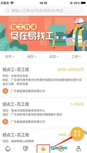 1、先进入本站的好工匠易页面,接着点击注册账号完成注册,之后找到底部的“易找工”模块并点击,就能看到发布找活的按钮了。