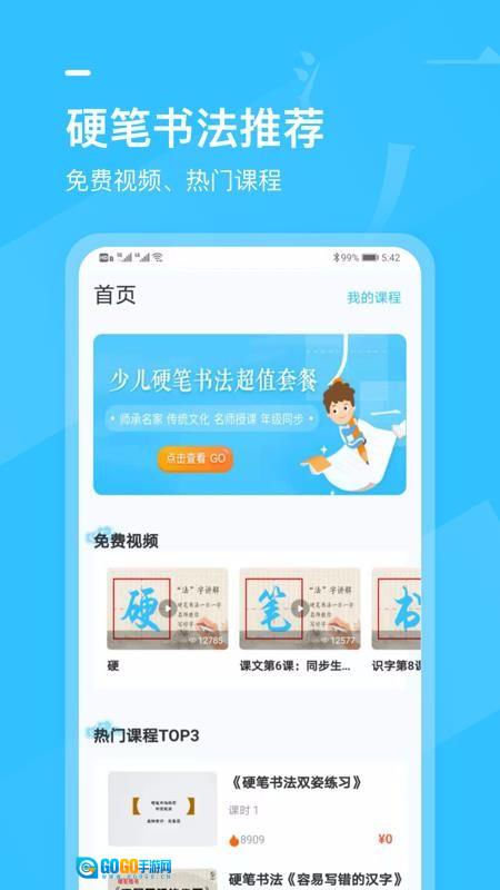3、课程学习栏目设置丰富,涵盖小学同步课程、硬笔基础课程以及硬笔专题课程等板块。