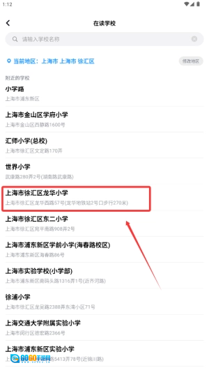 1、在搜索框中输入学校名称,或浏览周边的学校,进而选定拟入读的学校。