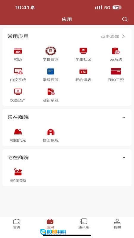 1、在应用中心里就能找到各类常用应用,涵盖学校、我的课表、我的工资等多种类型。
