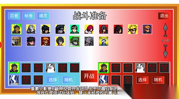 1、选择角色:开局前可挑选喜爱的火影忍者角色参与游戏;