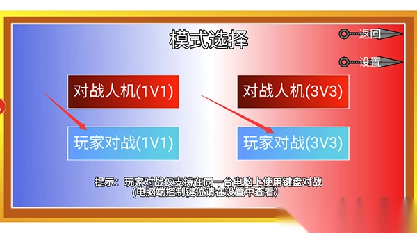 2、根据需求选择 “1v1” 或 “3v3” 对战模式;