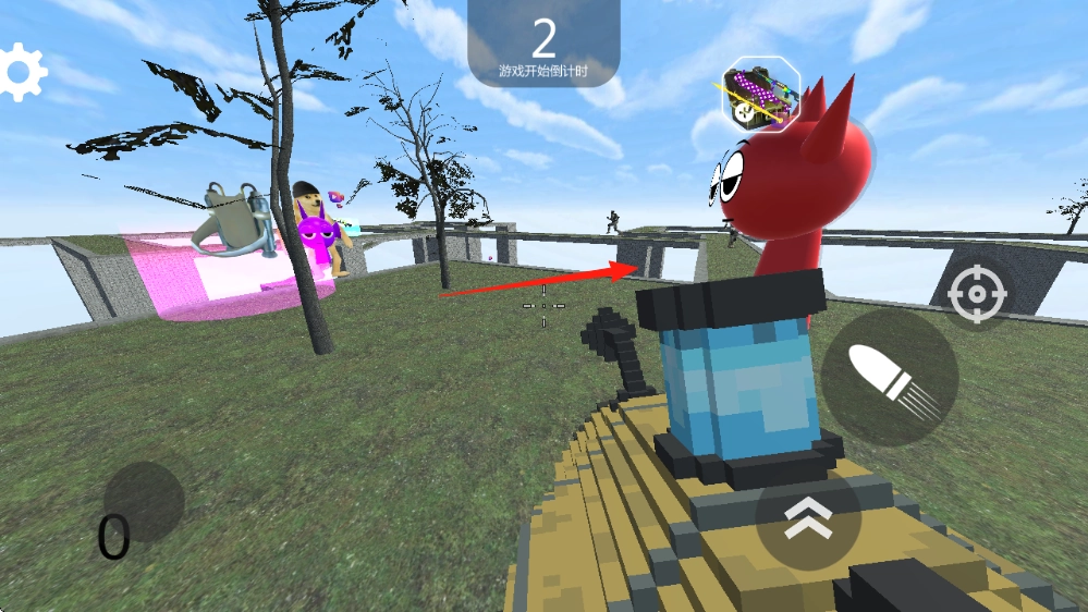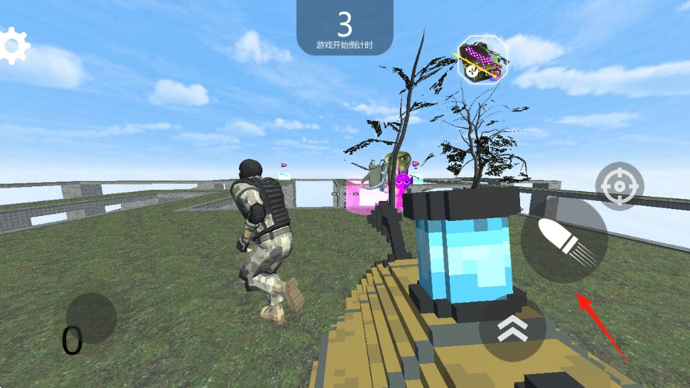 2、点击右侧攻击键炮弹、射击图标,攻击敌人,留意游戏开始倒计时3→2,提前准备战斗。