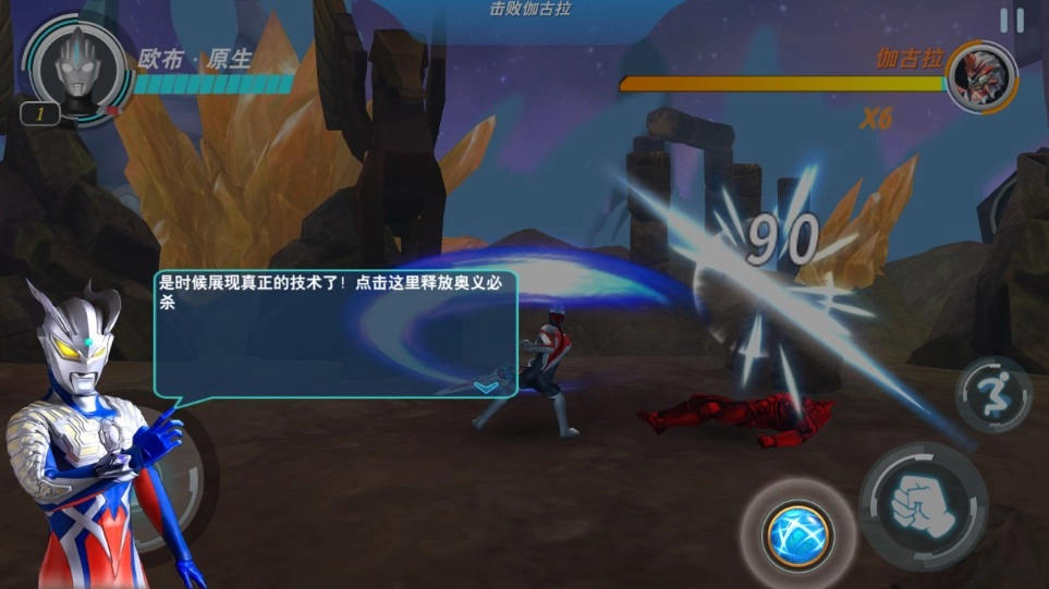 5、每位奥特曼都拥有独特的必杀技,点击即可触发。