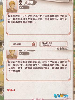 11、父亲与收粮商人进行谈判,此谈判需要15点魅力值,成功后可使家境增加4。