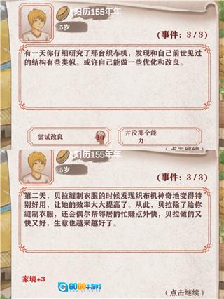 1. 修织布机:该行为在四五岁时出现,需具备10点智商,完成后可使家境提升3点。