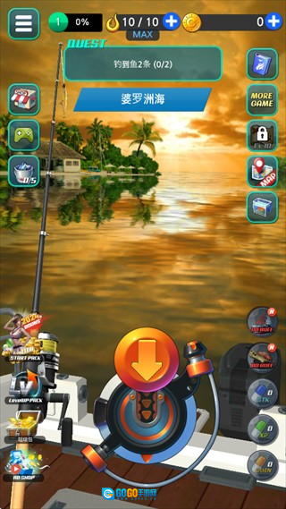 3、拖拉、放开按钮的同时调整弹力。拖拉久时,距离就快速变短鱼的HP或距离为0时,成功钓鱼!