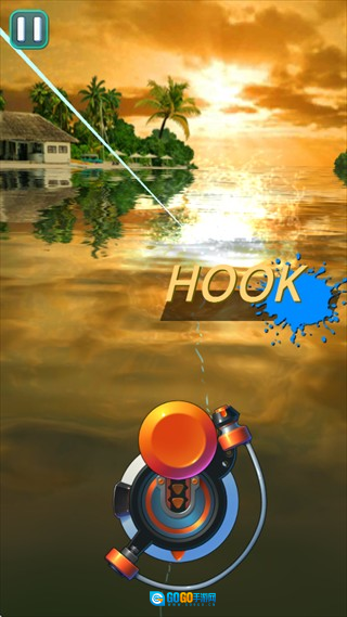 2、稍后出现的 Hook是标志鱼的上钩信号,出现标志的话,请在3秒内拖拉按钮。