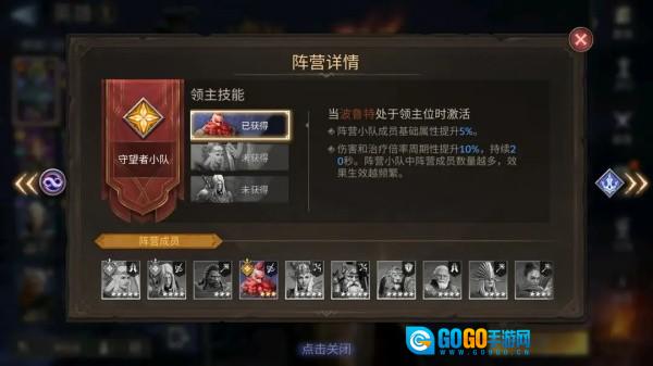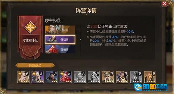部分英雄身为其所在阵营的领主,他们各自拥有领主技能。若在队伍中编入领主英雄,同阵营的成员皆可获得加成效果。
