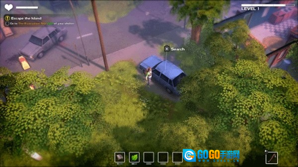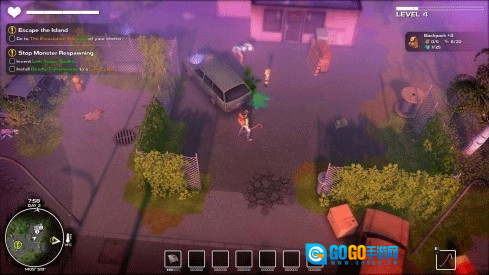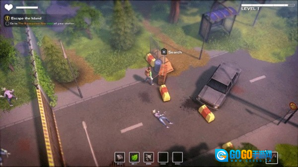1. 你能够往西走,会发现一扇上了锁的门以及2个小怪。虽然无法穿过那扇大门,但你可以查看附近的蓝色汽车和橱柜,从中找到一些废金属。