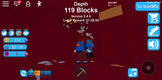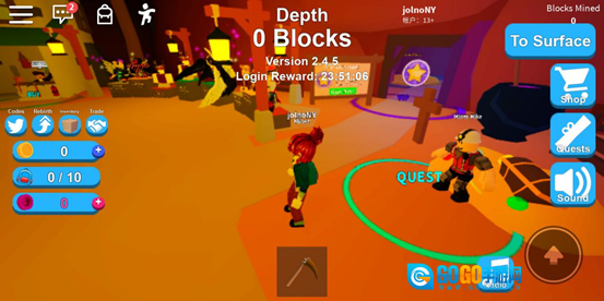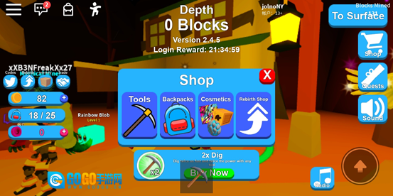 当积累了一定数量的金币,我们便能够前往带有购买标识的商人处购物。走进黄色圆圈后,商店界面就会弹出,该界面包含四个分类,分别为工具、背包、装扮(在此可购买发型、宠物等物品)以及重生商店(可购买各类道具)。在前期,重点是购置更高级的工具和背包,如此一来,便无需频繁返回地面,从而提升挖矿(赚钱)的效率。待拥有高级道具后,我们便能逐步深入到更下层的土地挖矿,有机会挖到更好的物品,要是运气够好,还能挖到金箱子、钻石之类的,但相应的,对挖矿工具的等级要求也会很高。