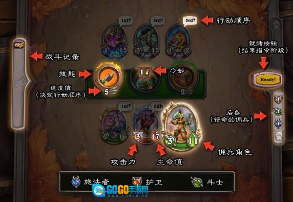 如果你此前对“佣兵战纪”已有所了解,或者已经初步上手体验,便会发现其中的卡牌以红、蓝、绿三种颜色区分,这三种颜色分别代表不同职业,红色对应护卫,绿色对应斗士,蓝色对应施法者,从职业名称大家大概就能知晓他们的擅长领域。