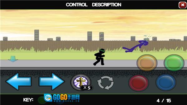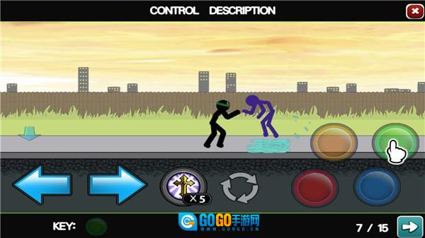 就拿最为基础的火柴人来说,让它赤手空拳,不携带任何武器,来给大家讲讲几个连招技巧。第一步,我们先熟悉一下几个基本的按键操作。