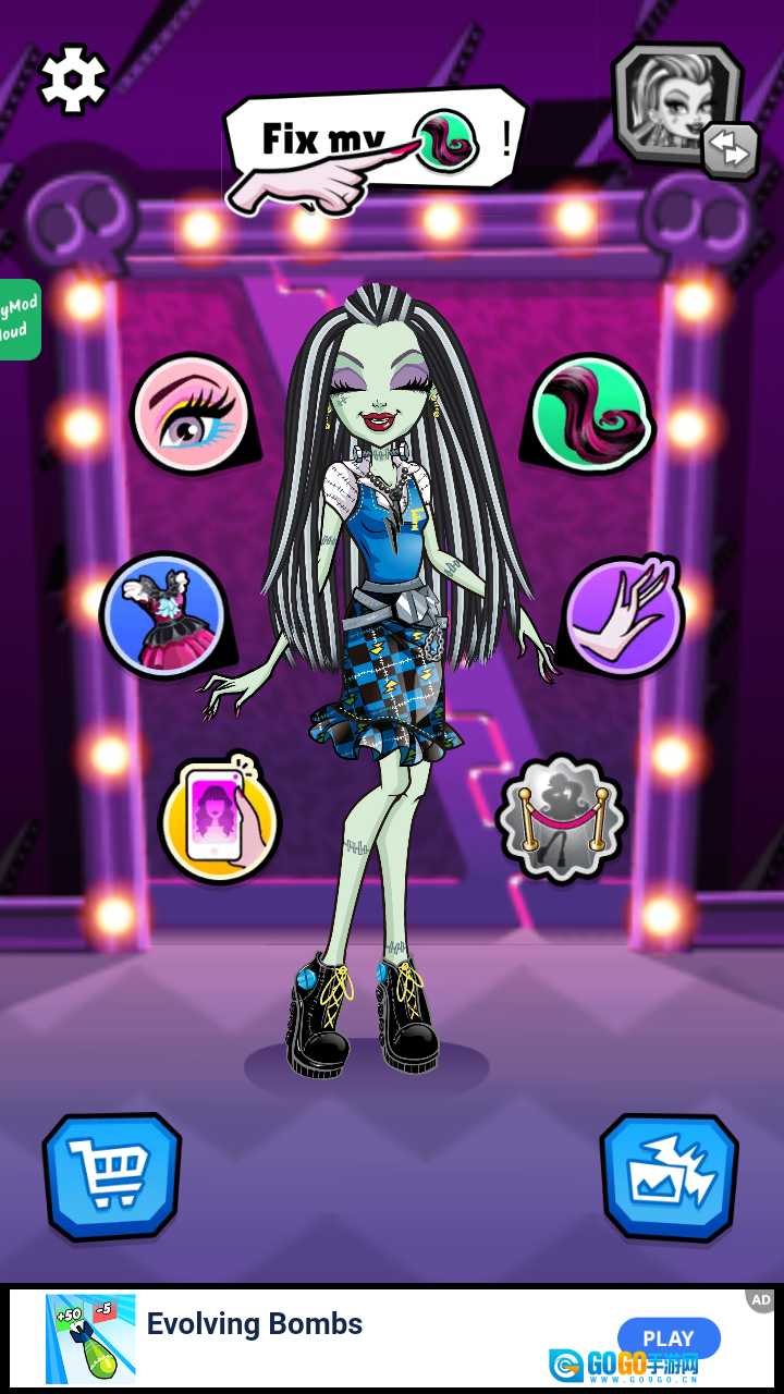 与狼人Clawdeen和幽灵食尸鬼组队挑选战袍:发光木乃伊绷带裤、朋克摇滚骷髅卫衣、透明幽灵纱裙等万千选择。隐藏鞋柜收藏着会自动变换颜色的魔法短靴与喷气式运动鞋。