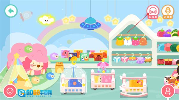 2. 当进入场景之后,能够点击右上角的听故事按钮,为宝宝讲述场景故事。