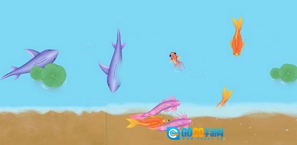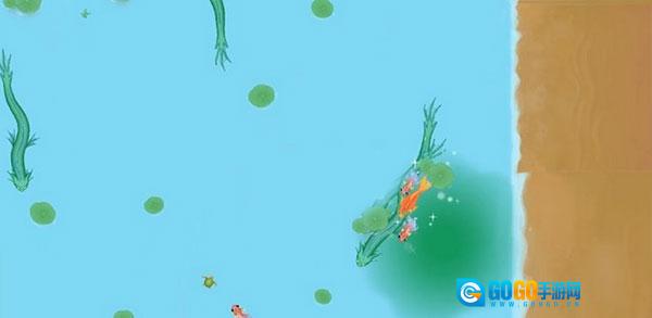 如果是手残党的话,可以考虑一直苟着来通过小蝌蚪到锦鲤的阶段,不要到处乱跑,尽量贴着沙滩游就可以了,贴着沙滩走还有减速的效果。如果可以用大屏、横屏玩,那么难度更是直接减半了。