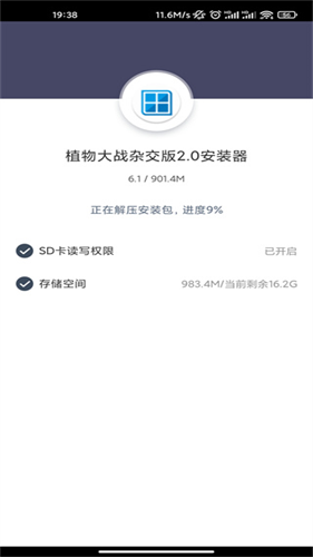 1、下载完成后,是一个安装器,需要点击安装,授予相关权限,打开等待解压完成。