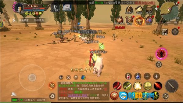 4、当上述所有步骤都完成后,即可开启野外挂机。建议尽量组队,因为组队能获得经验加成,同时在商城还能购买经验加成卷轴。通过野外挂机,主要可获取人物经验、技能经验以及金币。