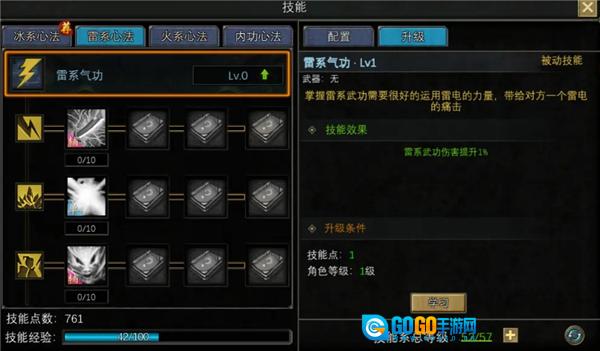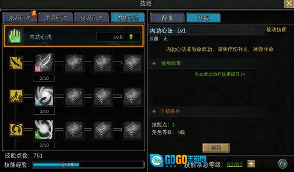 1. 全智火法枪采用全智慧加点方式。把火系气功点数全部加满,雷系气功同样加满,剩余点数加在冰系气功上。输出技能选择炎仞、火箭、闪电、极雷、狂雷,将这些技能都加满,并且把炎仞放置在技能栏的第一个位置。