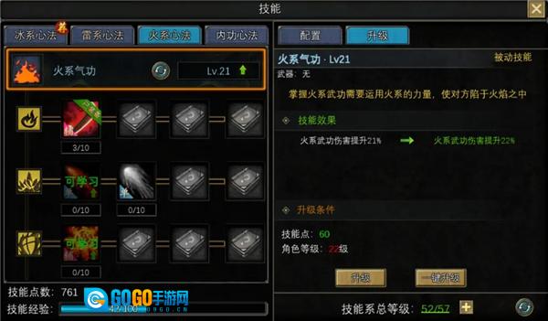 兼具物理攻击与魔法防御的火系气功,着重于物理伤害的加成以及魔法防御,攻击性十足。通过运转火之气息,可实现物理伤害的永久提升。当与大刀武器相配合时,不仅能够在战场上冲锋陷阵,有力地击退敌军,而且其较高的魔法防御属性,让修炼者面对魔法型敌人也毫无惧色。