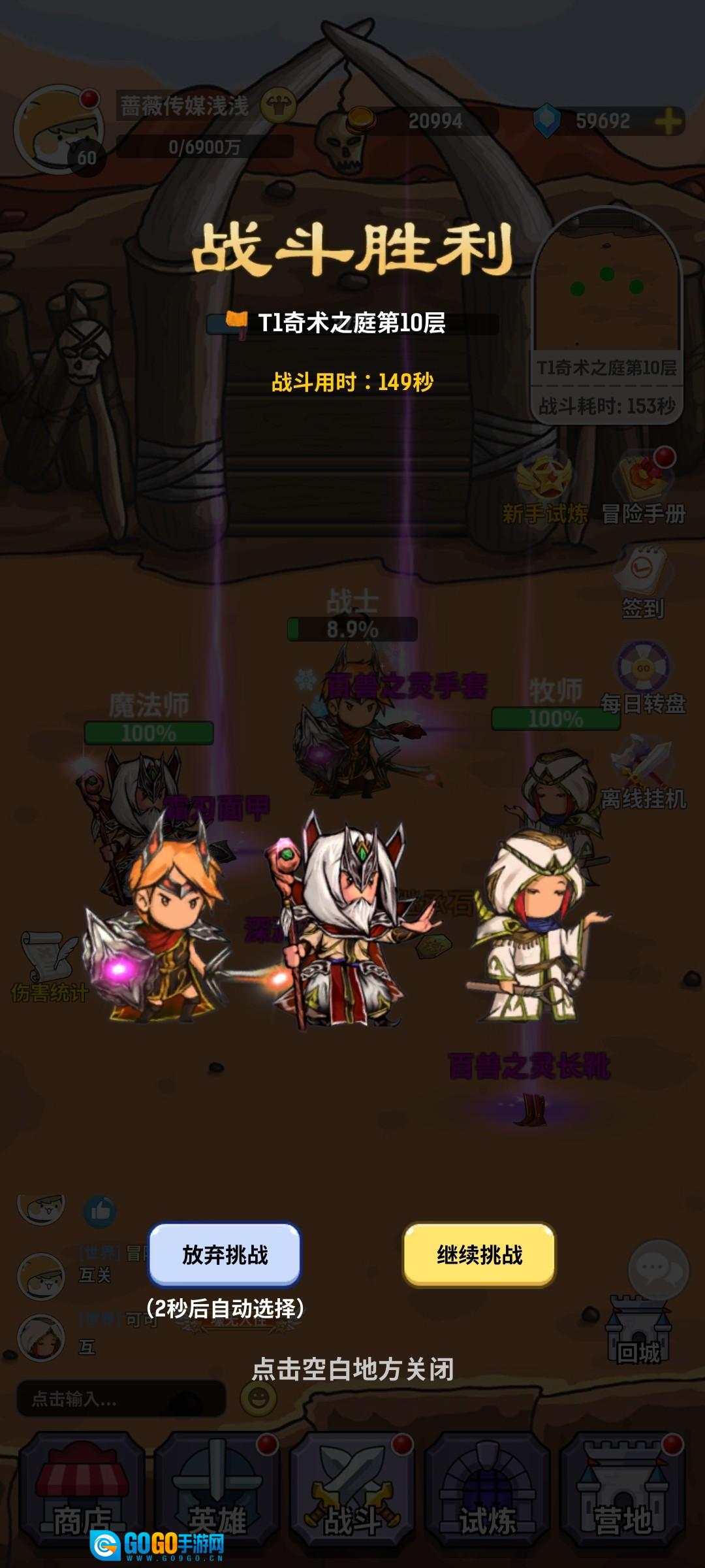 PS:分享一个小窍门,在阵容设置方面,有时打不过boss,原因在于战士率先遭受boss攻击,致使队伍减员,进而输出不够。此时,可在角色界面上阵与下阵上方的阵容位置,对阵容进行调整,优先安排主T承担伤害。如此调整阵容后,有助于攻克那些差一点就能通关却始终无法通过的地图。