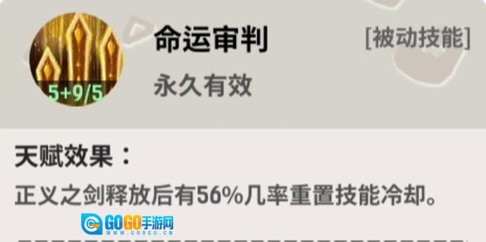 5. **正义之庭**:有概率重置力量祝福的冷却时间。